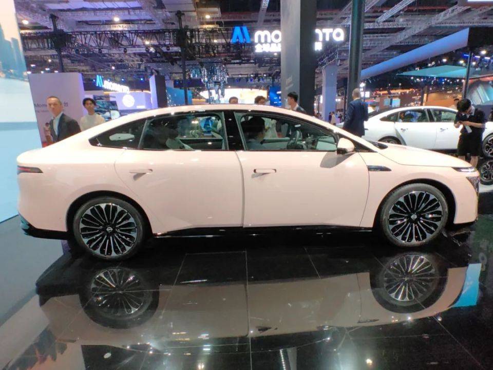 来到车身侧面,新车拥有0.618“黄金比例”车姿,配合3倍轮轴比,车身十分流畅且修长,整个侧面,实现无缝一体式设计,十分平整,无三角窗设计的无框车门,隐藏式腰线、隐藏式门把手,实现0.208超低风阻系数。新车定位一款中大型纯电轿车,车身尺寸方面,长宽高分别为4930/1895/1487mm,轴距为2915mm。