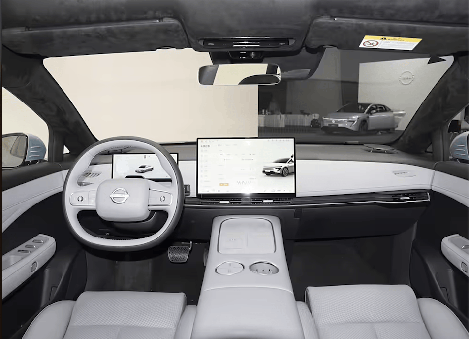内饰方面,简约的设计风格,两幅式方向盘,搭配15.6中控屏幕, 内置高通骁龙8295P芯片,搭配32G内存、256G储存空间,搭载了NISSAN OS车机系统、AI智能伙伴、自然之境五感联动系统、场景自定义、手车互联等多元功能。搭载云享座舱,接入DeepSeek等头部AI大模型。