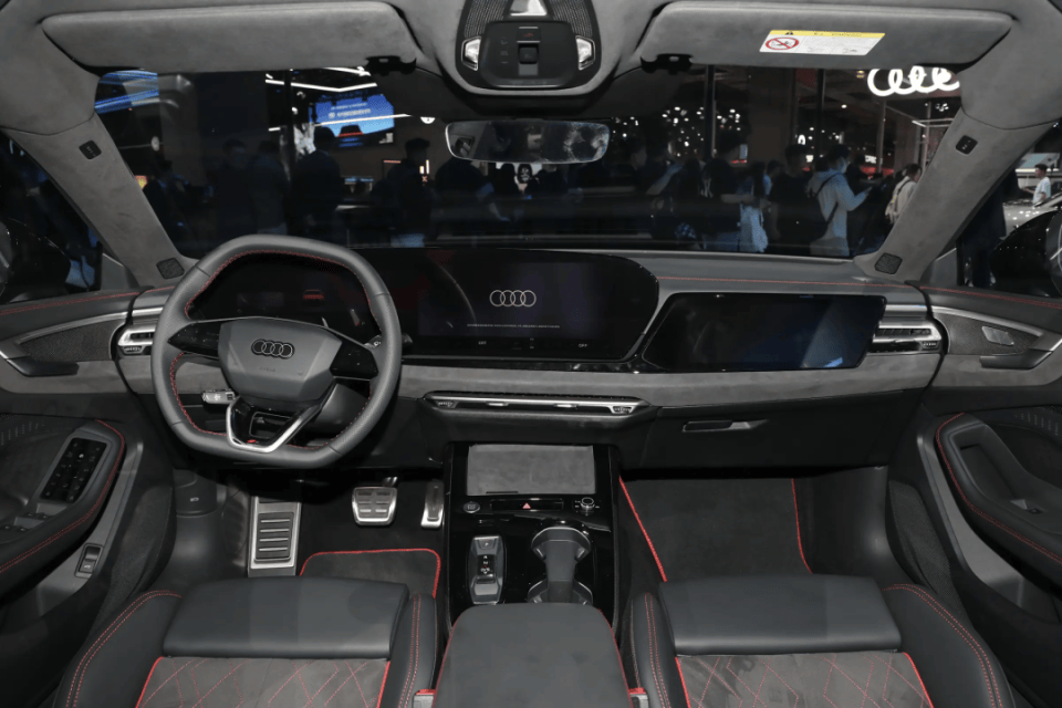 内饰方面,延续奥迪最新家族化设计风格,也融了中国的智能化,搭配平底式多功能方向盘,电子滑块样式换挡机构。智能化方面,配备11.9英寸液晶仪表屏+14.5英寸中控屏幕+副驾屏幕。车内采用黑色的基础色,搭配红色缝线、红色安全带。