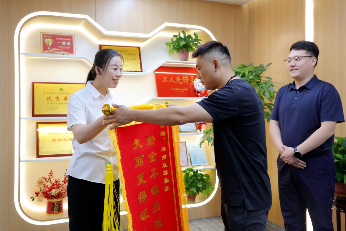 4月30日上午,一面写着“拾金不昧品德高,失而复得暖人心”的锦旗被郑重送到济南能源集团所属济南市冷热联供公司,此时,大家才知道王晨雪默默完成了一桩温暖人心的善举。