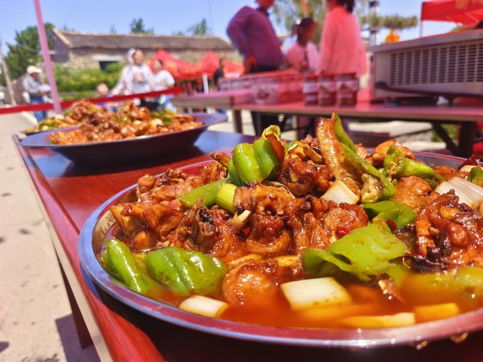 五一期间走进石井镇,只见黄桃林里青果初结,花椒树上嫩芽新发。文旅市集活动现场的文化演出更是精彩纷呈,近50场包括八卦拳、太极拳、戏剧表演、歌曲展示及“大妈也疯狂”模特走秀等节目轮番上演,吸引众多游客驻足观赏。临沂形意拳非物质文化遗产代表性传承人杨中波表示:“这次来石井镇表演,深切感受到群众对传统文化的热爱。我们计划在这里设立武术传播点,让更多人了解和学习传统武术。”非遗市集展区内,临沂市市级非物质文化遗产费县剪纸传承人孙晓东现场表演剪纸技艺,一幅栩栩如生的《五谷丰登》引得游客连连赞叹。