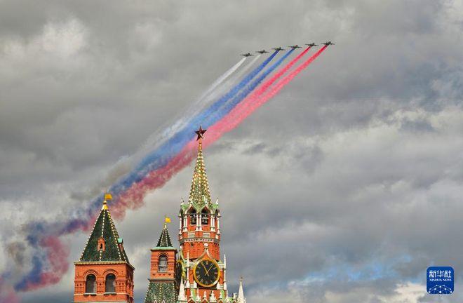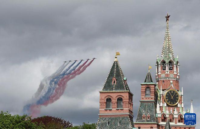 5月5日,在俄罗斯首都莫斯科,战机编队飞过红场,参加苏联伟大卫国战争胜利80周年阅兵式彩排。