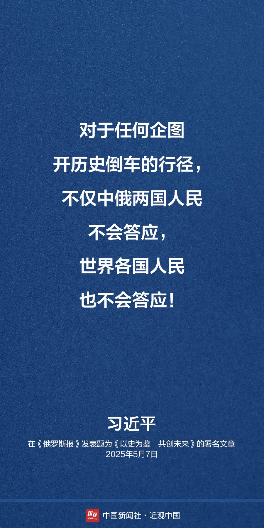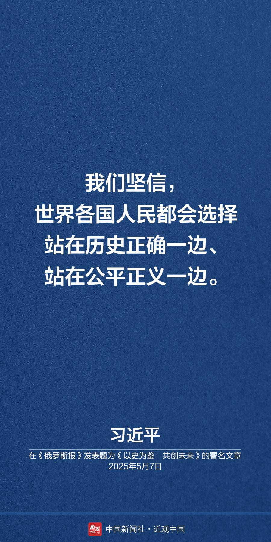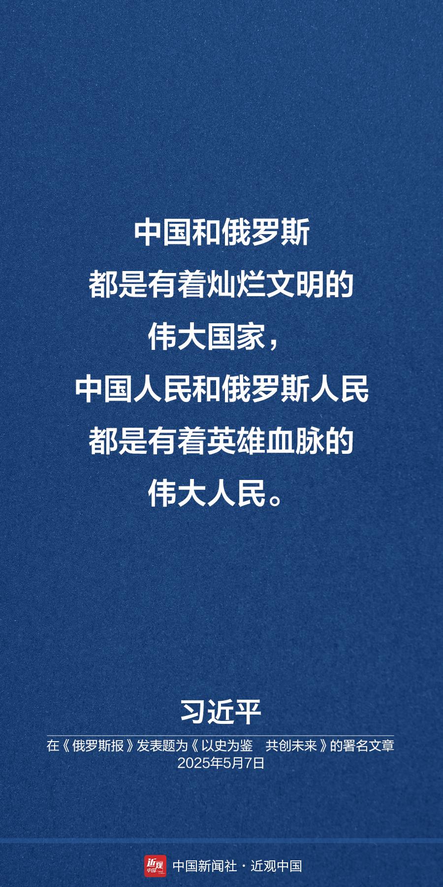 习近平:坚决反对一切形式的霸权主义和强权政治 2025-05-07 16:08 来源:锋行天下 5月7日,在赴莫斯科对俄罗斯进行国事访问并出席纪念苏联伟大卫国战争胜利80周年庆典之际,国家主席习近平在《俄罗斯报》发表题为《以史为鉴 共创未来》的署名文章。文章指出—— 【编辑:胡寒笑】