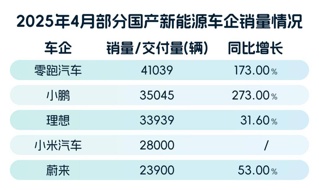 一直在ICU进进出出的小鹏在去年推出MONA M03和P7+之后找到了方向,如今更成为新能源市场的增长领头羊,4月销量达到3.5万辆,同比增长高达273%。