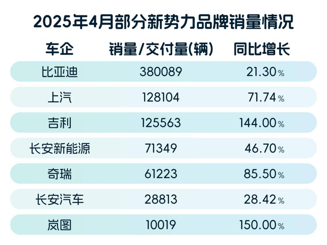 吉利能够取得这样的增长,主要归功于吉利银河,这是过去一年里整个市场增长最快的新能源品牌之一,在4月其销量已超过了9.6万辆,星愿、银河E5、星舰7 EM-i均成为细分市场领跑车型。之后随着星耀8、战舰等新车型推出,产品阵容的持续完善,吉利银河未来还有巨大的增长空间。