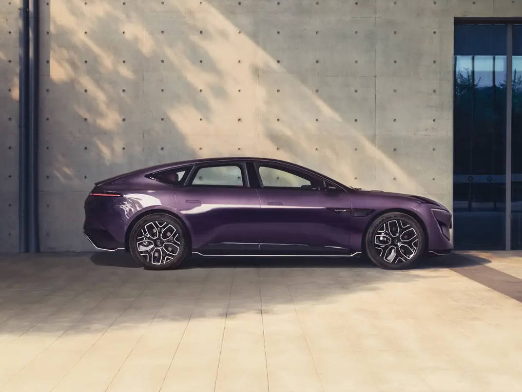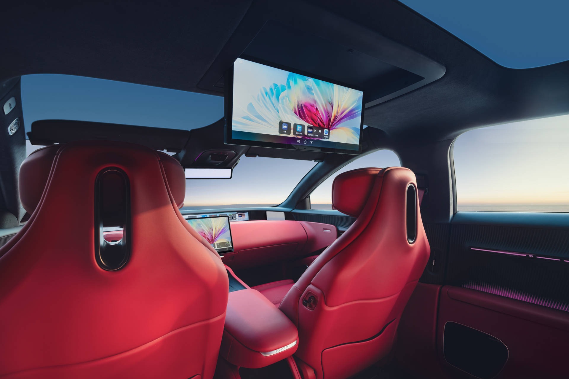 车尾部并没有传统后挡风玻璃,有流媒体后视镜负责照顾车后视角。尾灯并未采用贯穿式设计,细长的造型营造出简洁而又犀利的视觉效果。另外,新车尾部配备主动升降扰流板,增加高速行驶时的稳定性。