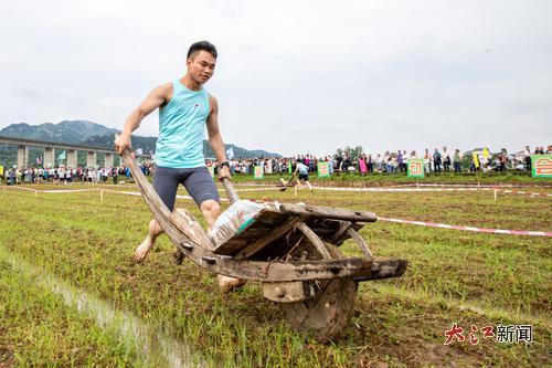 农民趣味运动会精彩纷呈 2025-05-09 06:51 来源:大江网-信息日报 5月5日,宜春市袁州区西村镇现代农业产业园举办“绿意盎然·步步向前”田间趣味运动会,来自各地的300多名运动员参加了竞速赛、亲子慢跑、趣味寻宝、挑水灌溉接力赛、稻田拔河、农耕独轮车接力赛等充满趣味的比赛项目,让前来参与农耕活动体验健身乐趣的人们兴致盎然,直呼过瘾。 大江网视觉江西彭健摄