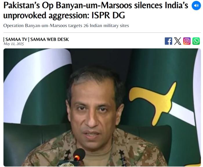中新网5月12日电 综合巴基斯坦SAMAA电视台报道,当地时间11日,巴基斯坦三军新闻局局长乔杜里宣布,在遭到来自印度方向的袭击后,巴基斯坦武装部队对印方发起了“铜墙铁壁”行动,并公布了行动细节。