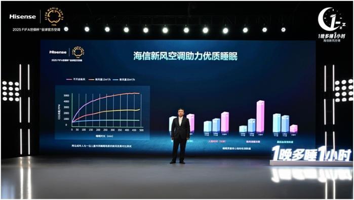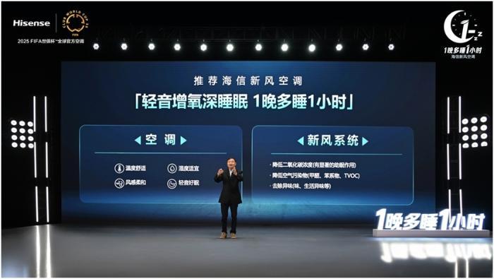 5月12日,在“1晚多睡1小时—海信新风生活方式发布会”上,海信正式推出新风空调健康睡眠解决方案,并联合中国睡眠研究会、中国家用电器研究院等多家权威机构正式发布《新风空调助眠白皮书》,白皮书以科学严谨的实验证明:海信新风空调凭借其新风增氧、高效净化以及极致静音的独特属性,能显著改善睡眠环境的空气质量,提升睡眠的舒适度,全方位实现睡眠效率的提升。在海信新风空调优化后的空气环境中,用户7小时的睡眠时长,可抵传统空调环境下8小时的睡眠效果,相当于“1晚多睡1小时”。