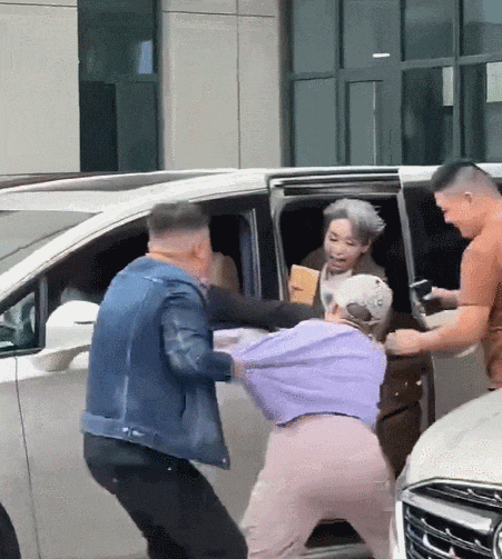 可能是看到人家年纪大了,俩保安心里不忍心,反正就是轻轻一扶,生怕弄出啥麻烦。