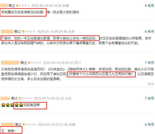 不在少数的一星,大部分都在吐槽男演员颜值,以及剧情疑似魔改历史。