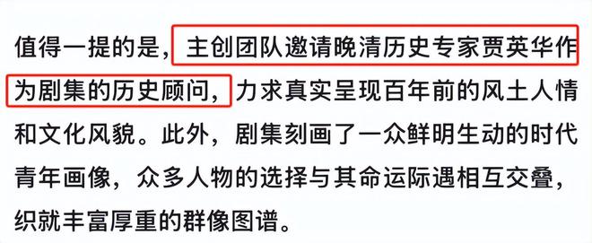 在简单介绍剧情后,编辑特意提到了《人生若如初见》的主创团队邀请了贾英华老师,作为历史顾问。