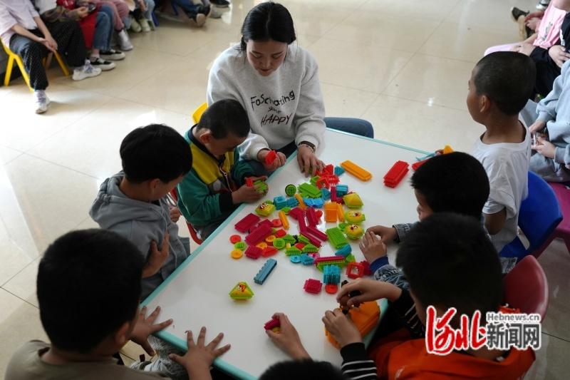 图为5月15日,迁安市爱心志愿者走进天云残障人士康复中心教孩子们做手工。张泽慧摄