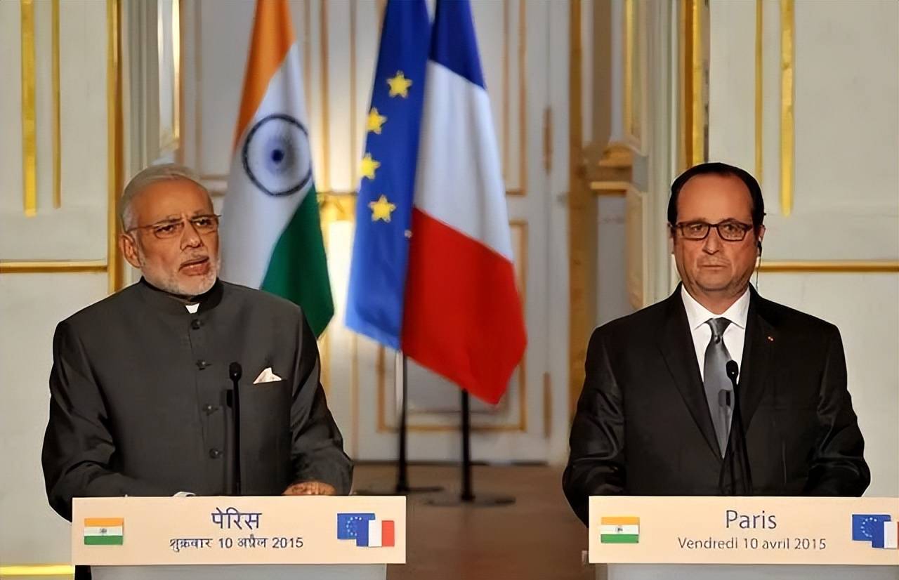 ▲2015年4月10日,新上台的印度总理莫迪(左)与法国总统奥朗德(右)在法国首都巴黎宣布,印度将采购36架“阵风”