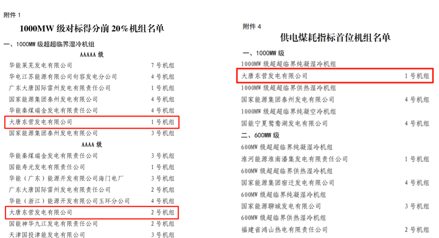 近日,中国电力企业联合会公布2024年度电力行业火电机组能效水平对标结果,大唐东营发电公司1、2号机组分别荣获1000MW级超超临界湿冷机组能效对标AAAAA级和AAAA级优胜机组,1号机组同时荣获1000MW级超超临界湿冷机组“供电煤耗指标首位机组”称号,连续三年蝉联供电煤耗最优机组称号。