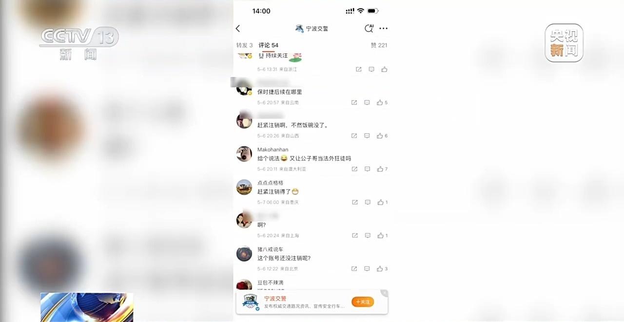 宁波市公安局交通管理支队政工纪检室副主任 张旖婕:为了进一步规范新媒体平台的管理,根据上级的要求,对我们的几个新媒体平台进行了资源的整合。我们发布了一个停更的公告,同步我们也向抖音提出注销的程序,2025年2月6日,抖音平台通过申请以后,我们就已经停更注销了账号,实际上跟这个事件是没有任何关系的。