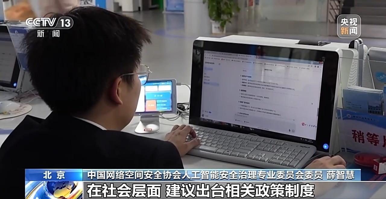中国网络空间安全协会人工智能安全治理专业委员会委员 薛智慧:可以从在用户层面,让民众了解AI生成内容的原理,学习辨别虚假信息;在平台层面,AI软件服务商应建立严格的审查、检测、过滤的制度;在社会层面,建议出台相关政策制度,规范AI的使用等多个方面去考虑。