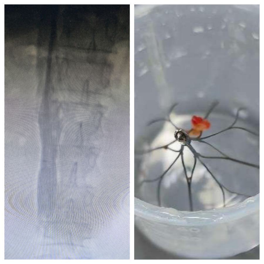 近日,血管两腺外科医生通过介入手术,将患者体内一枚放置长达294天的下腔静脉滤器顺利取出,术后该患者一切正常,无不良反应。