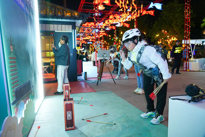 “市民寻宝记”文化市集上,孩子在体验投壶。主办方供图