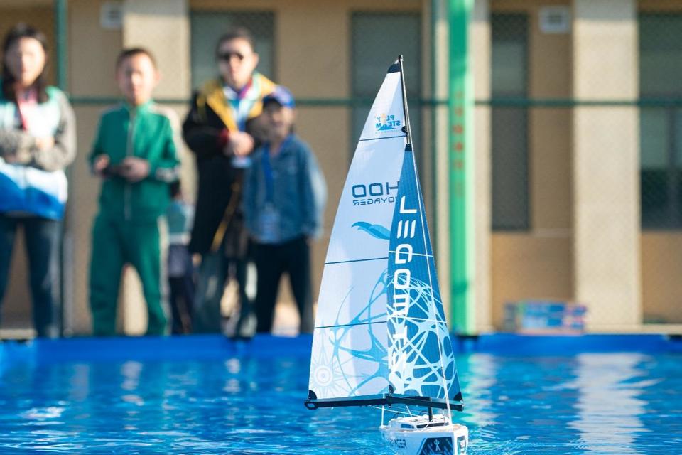 在篮球场水池区域,选手们或蹲或站,紧盯水面,根据模型航行状态迅速调整参数,专注神情令人动容。中国航空母舰模型直线航行赛与中国导弹护卫舰模型直线航行赛同步进行,参赛选手操控模型模拟舰艇在“水域”中直线竞速。随后进行的“中华鲟”鱼雷电动模型航行赛、新“自由”号遥控游艇水上足球赛、“白马湖”号400遥控帆船饶标赛,则考验模型在水中的动力控制与航行精准度。