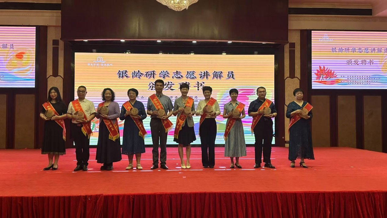 启动仪式上,主办方发布了银龄研学项目宣传手册与视频,还对银龄研学项目路线、课程、阵地等内容进行详细推介,并为首批银龄研学志愿讲解员颁发聘书。