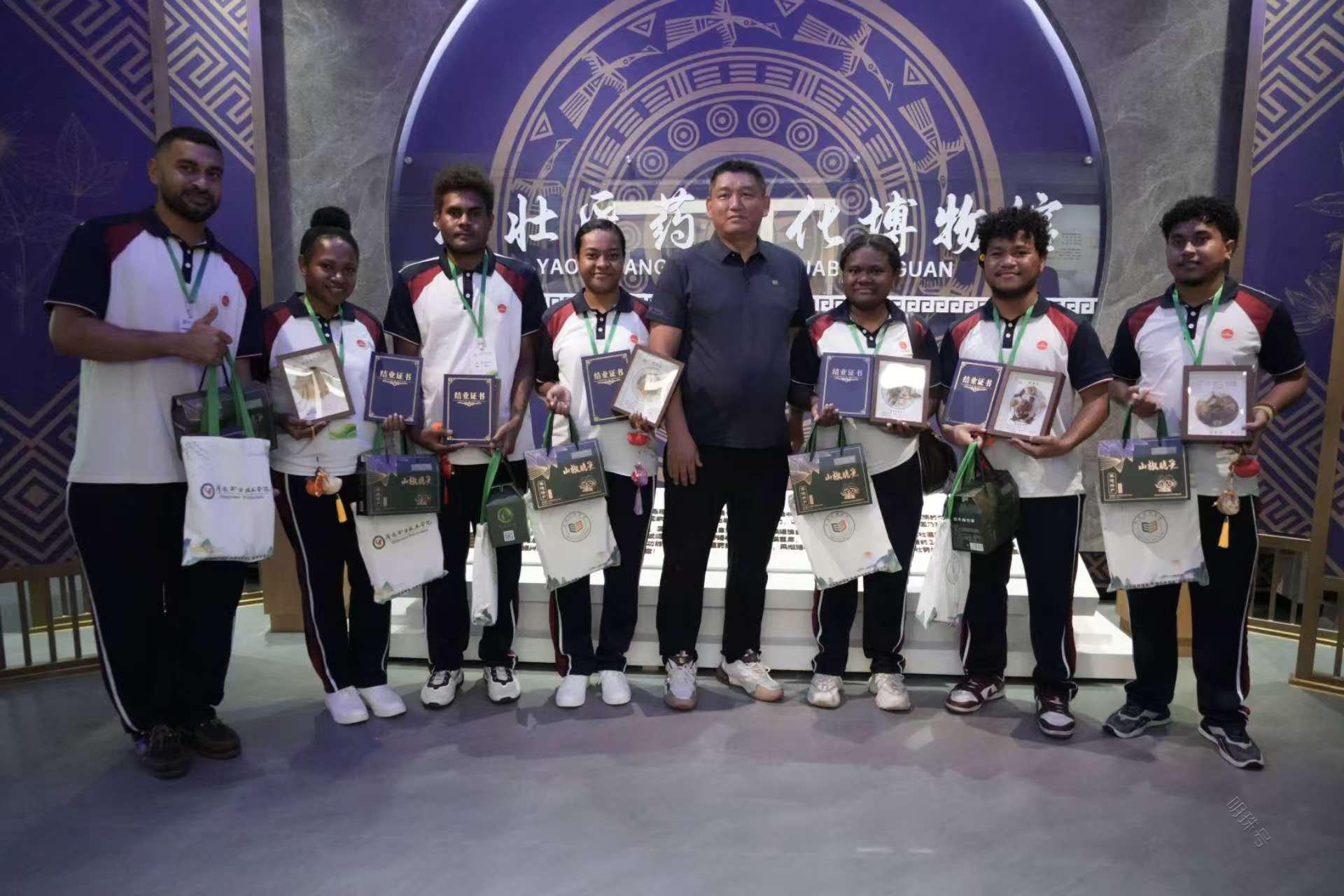 共工新闻社专题电 (记者黄庆华报道)2025年5月17日,清远职业技术学院举办了“探秘民族瑰宝弘扬中华文化”国际留学生研学交流活动。活动旨在深化学院国际化办学特色,增进国际留学生对中华优秀传统文化的了解,培养具有国际视野和文化底蕴的新时代人才。清远职业技术学院党委书记李斌、副院长张帆,国家瑶医药非物质文化遗产传承人邓强,食品药品学院院长程天德以及师生代表共同参加了交流。五邑大学国际交流合作处王纯阳处长、国际教育学院包丽萍老师率15名留学生参与了本次活动。李斌书记指出,本次活动是践行关于文明交流互鉴、国际人文交流合作等理念的一次生动实践。邓强大师深入阐述了清远瑶壮医药文化及民族医药传承特色,为留学生们展开一幅多彩的民族文化底蕴画卷。