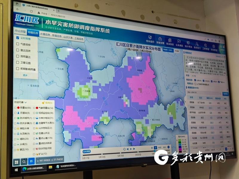 “新增11个暴雨预警,请及时处置。”5月22日,走进汇川区水务局水旱灾害防御值班室,工作人员文杰正在处理汇川区水旱灾害防御调度指挥系统播报的预警信息,并通过远程遥控监控设备对各水库监测站点进行检查。