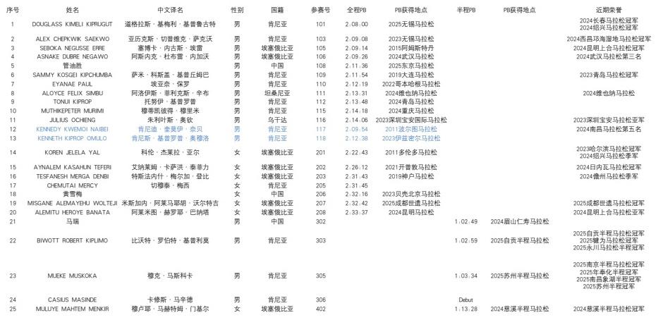 2025一汽红旗长春马拉松精英跑手名单公布 2025-05-23 23:09 来源:中国吉林网 5月23日,中国吉林网从赛事组委会获悉,2025一汽红旗长春马拉松精英跑手已经全部“到位”。 这份精英跑手名单中,一众精英跑手中,来自肯尼亚的选手道格拉斯·基梅利·基普鲁古特成绩最为出色,他的成绩为2小时08分。女子选手中,埃塞俄比亚选手科伦·杰莱拉·亚尔成绩最好,她的成绩为2小时22分43秒。另外,中国著名选手管油胜、马瑞等均报名参赛。中国吉林网 吉刻APP记者 于洋图片为网络截图