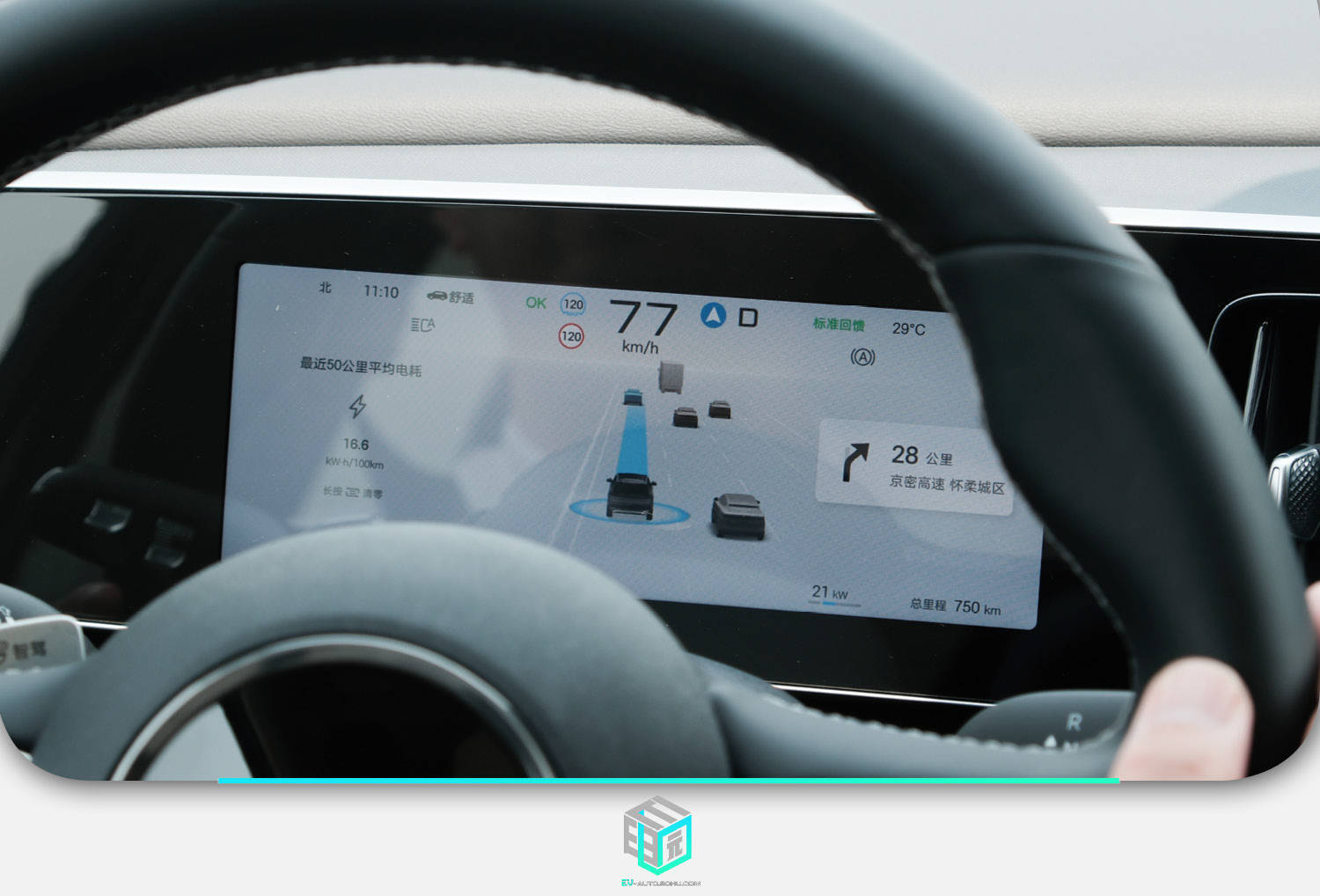 智驾方面,我们试驾的车型搭载了天神之眼 C - 智能驾驶辅助三目版,其能够支持比较高阶的高快领航(HNOA)、全场景智能泊车等高阶功能,我们在试驾过程中也短暂体验了其高快领航功能,对于高速路、快速路这类路况相对简单的场景来说,其目前整体表现较为稳定。