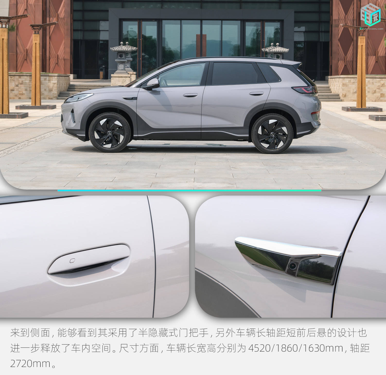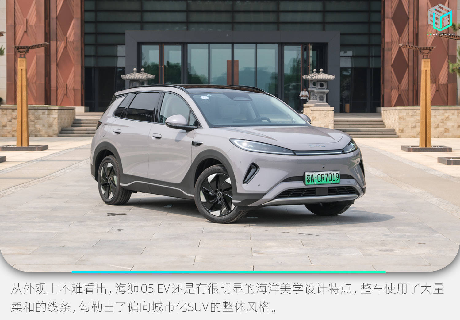 从外观上不难看出,海狮05 EV还是有很明显的海洋美学设计特点,整车使用了大量柔和的线条,勾勒出了偏向城市化SUV的整体风格。车身两侧下方的黑色护板,也为其增添了一丝野性,不知道大家是更喜欢与车身同色的设计还是目前这个风格。