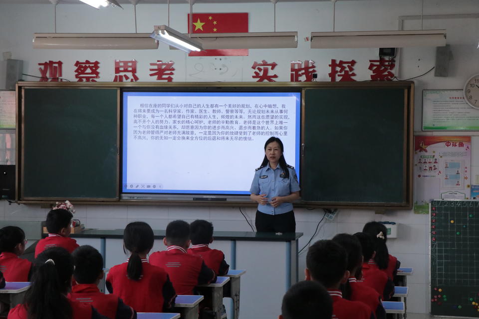 为增强青少年法治意识,筑牢校园安全防线,5月19日,莒县第四实验小学联合莒县公安局城东派出所举办“法治进校园”专题报告会。城东派出所于教导员以“知法守法,向阳成长”为主题,为师生上了一堂生动鲜活的法治教育课,用法治力量护航青少年健康成长。
