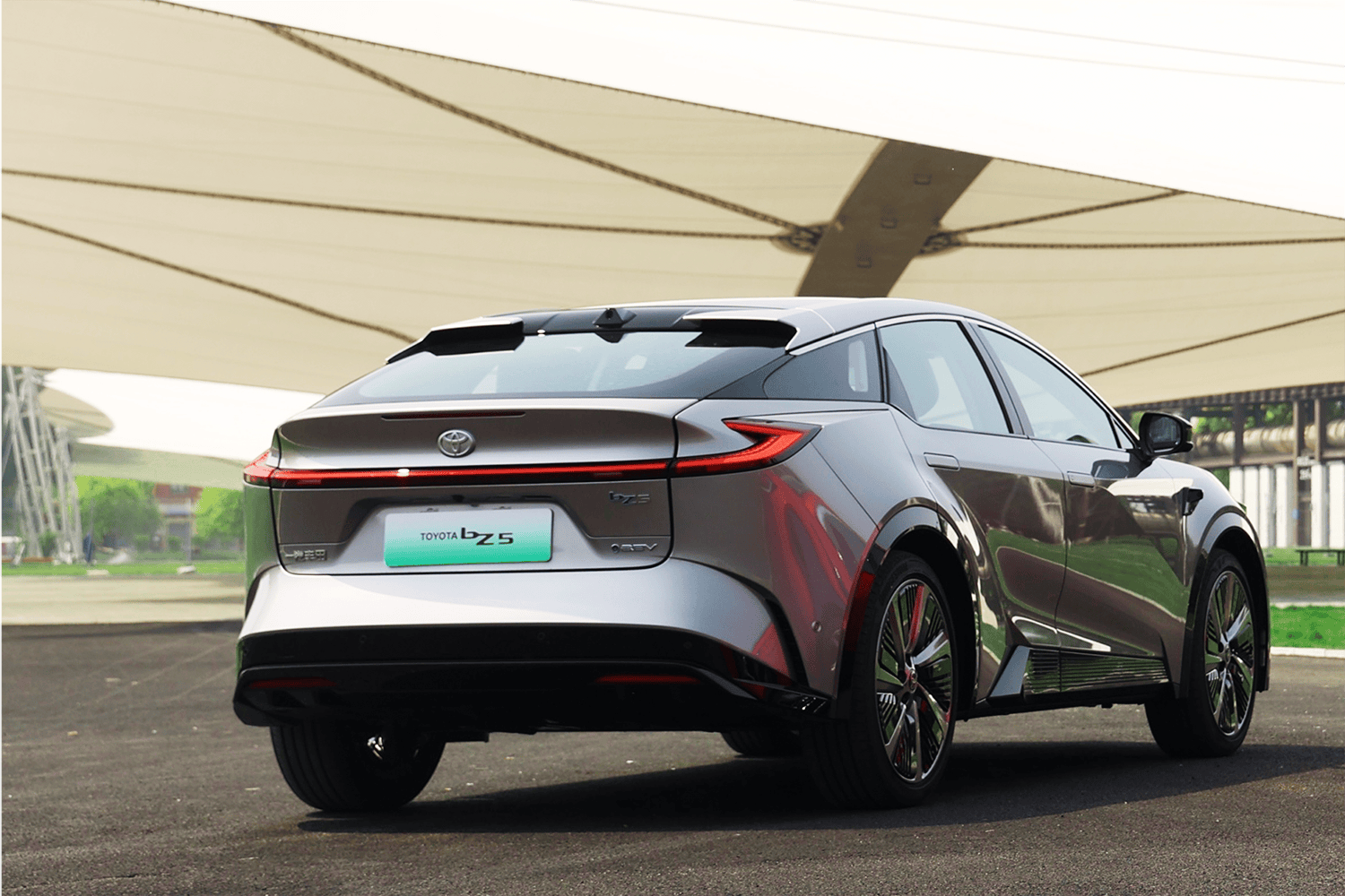 上方是它的激光雷达,这款车也同样采用时下流行的驾驶辅助功能,它由Momenta 5.0和TSS两套逻辑进行整合,能实现城市和高速的导航驾驶辅助、泊车辅助等30余项功能。车侧是最有设计感的,一整个悬浮溜背SUV风格。特别是后轮拱这块凸出来很大一块,非常有力量感。也巧妙地和回旋镖状的后尾灯进行了连接。车尾就是顺理成章的一个贯穿、多层、溜背设计。总的来说,bZ5的外观设计,真是跳脱出了我们对丰田的认识。