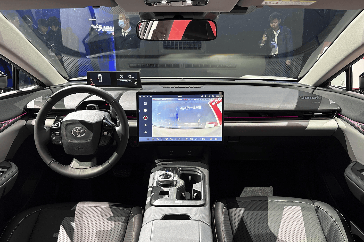 进入车内,也是满满的新势力味。这台bZ5也配备了时下流行、但编辑部一致不喜欢的一个配置——全景天幕。虽然说它采用了Low-E涂层+Ag2涂层,有99.98%紫外线隔绝率与99.3%红外线隔绝率,但是总归不如物理的遮阳帘以及车顶隔热来得彻底。更新势力的是它的内饰造型,贯穿式中控加上软质材料包覆,还有窄条幅式液晶仪表盘搭配15.6英寸中控屏,显示分辨率达到了1920x1080,交互系统也和常见的新势力车型别无二致。