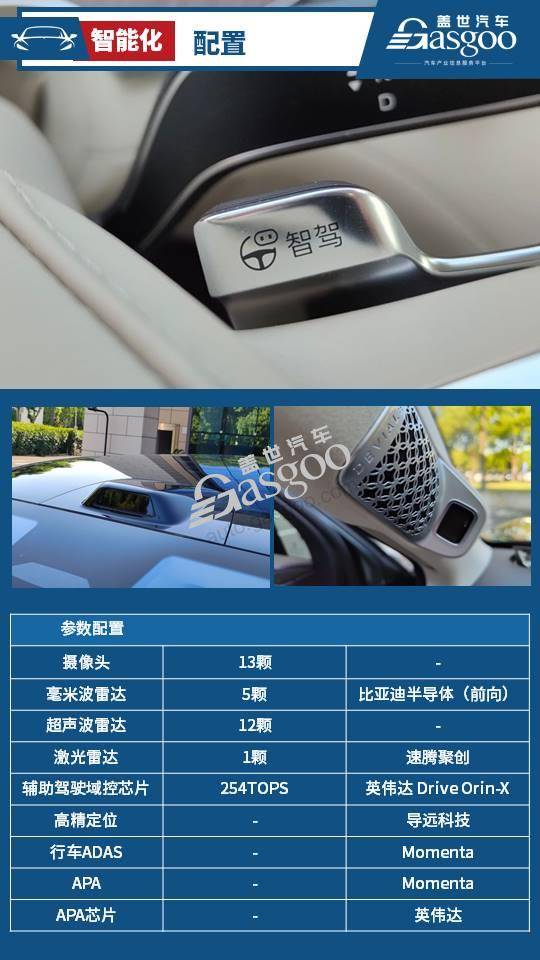 腾势N9搭载的天神之眼B驾驶辅助系统。硬件方面,配备了1颗高精度激光雷达、5颗毫米波雷达、13颗摄像头以及12颗超声波雷达,构建起了一个全方位的感知网络。辅助驾驶芯片选用了英伟达Orin X,拥有254TOPS的大算力,能够迅速处理大量的传感器数据,并做出精准的决策。