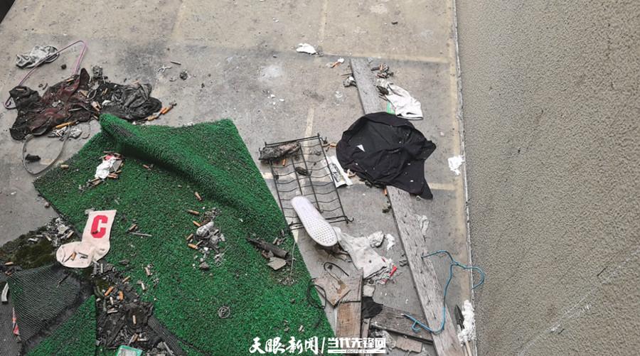 此前物业对1楼某住户室和2楼某住户之间的彩钢瓦进行清扫(杨经理提供)
