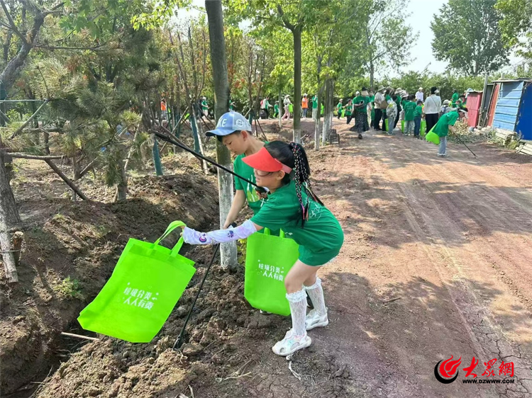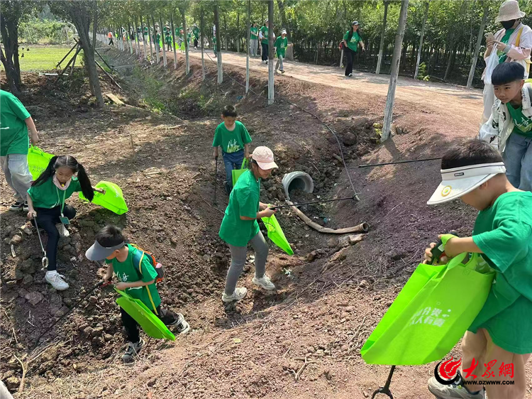 近日,青岛市城阳区流亭街道环卫科组织开展户外垃圾捡拾活动,孩子们穿着统一的服装,拿着特制的环保袋,像一群守护自然的小卫士,踏入公园。