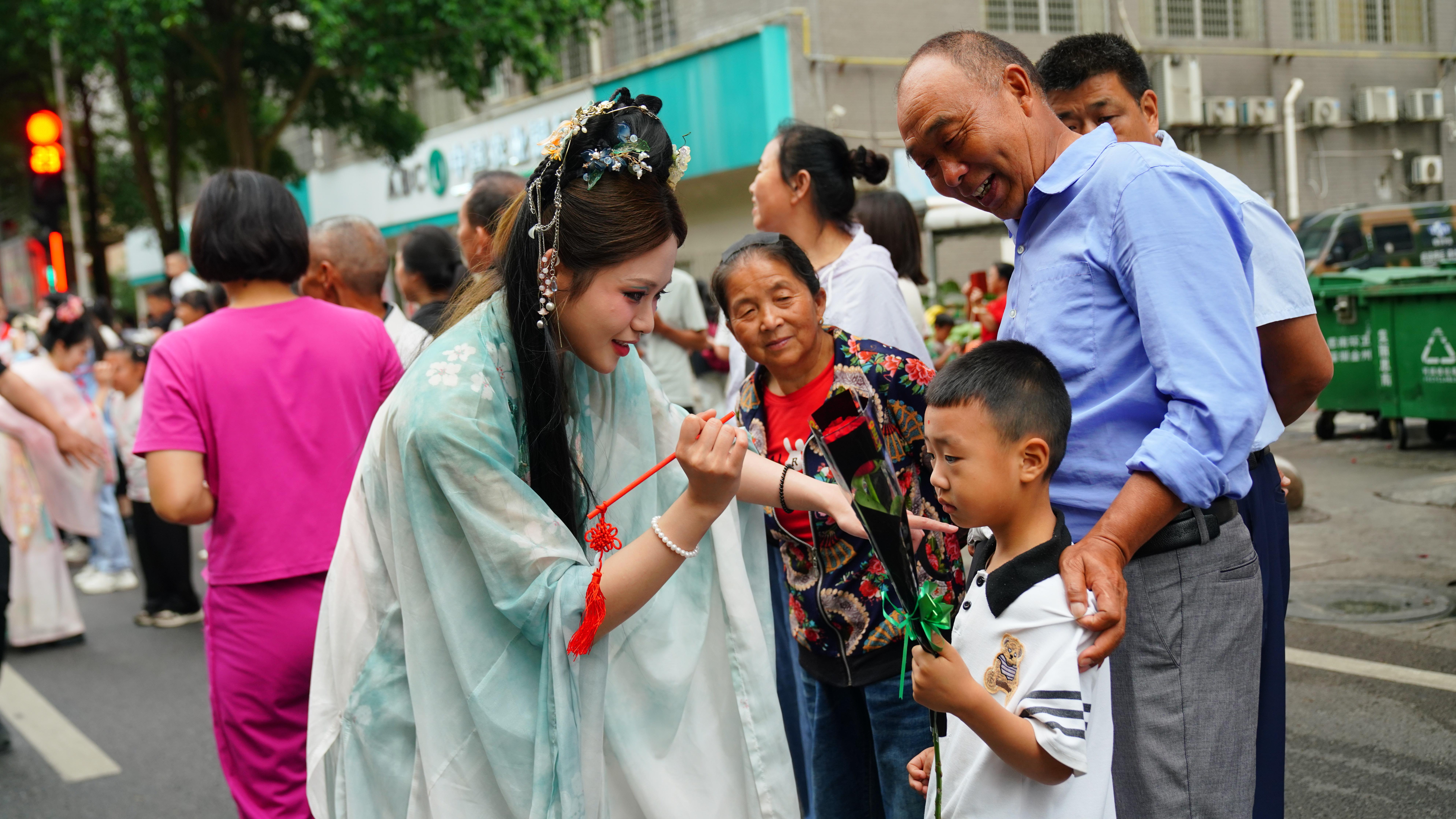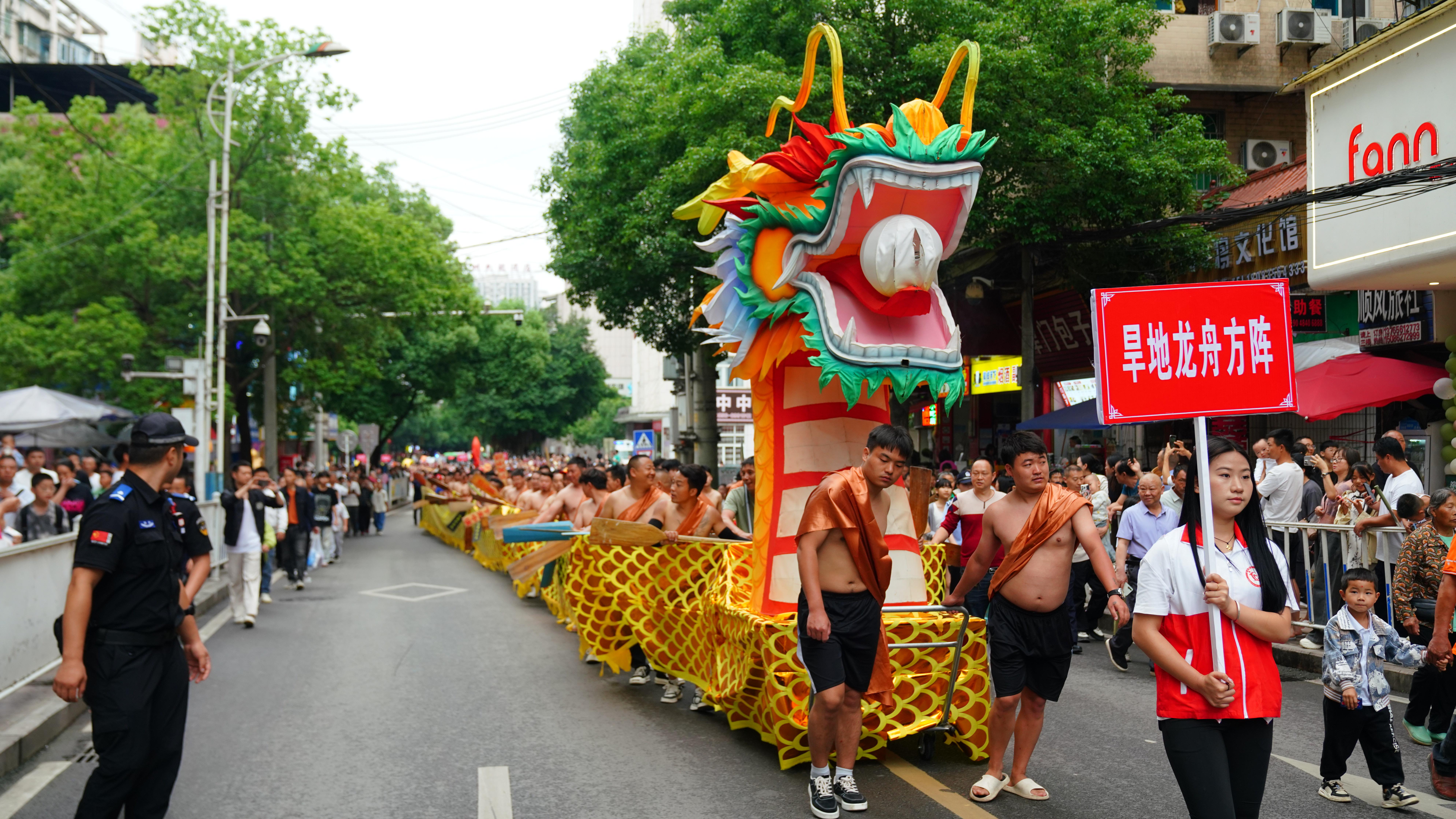 上午9时,巡游队伍自古迹园公园启程。由数百名非遗传承人、文艺爱好者及社区居民组成的傩戏祈福、旱地龙舟、土家民俗、龙吟鼓舞、乌江纤夫等方阵,宛如一条流动的“时光锦带”。巡游前方的古韵福泽方阵,巧妙融入纪念屈原、插艾蒿、挂菖蒲、喝雄黄酒、吃粽子等传统节俗元素,寓意驱邪纳福、祈愿丰年。