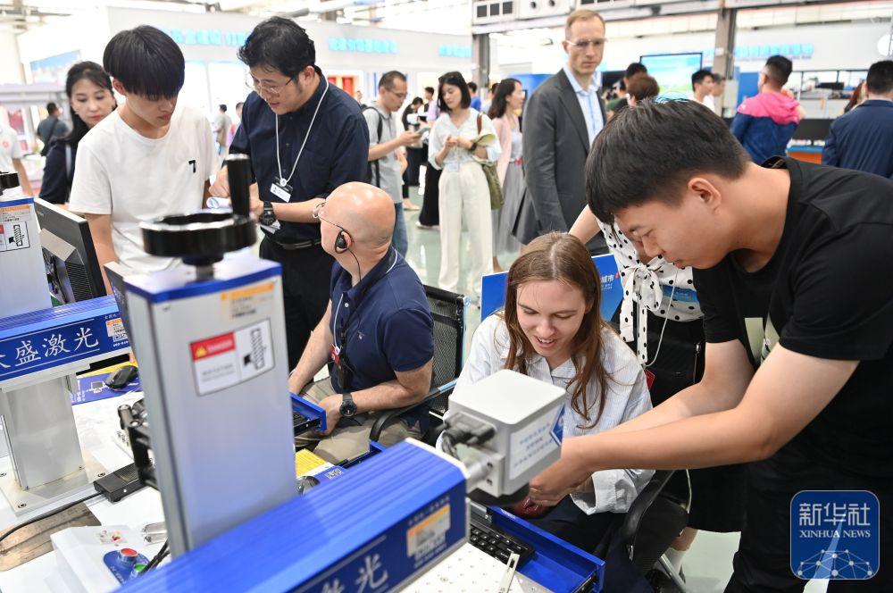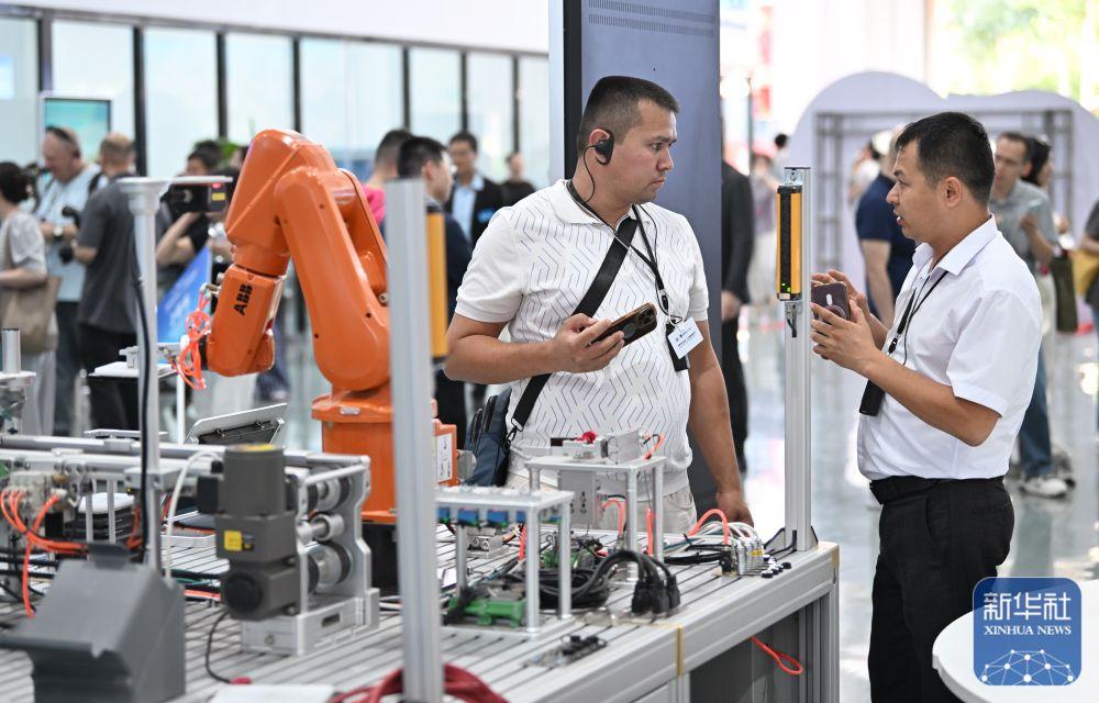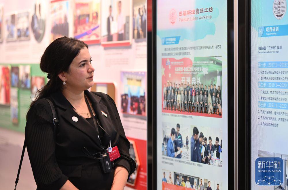↑ 7月7日,嘉宾在鲁班工坊建设·体验馆参观。新华社记者 李然 摄影报道