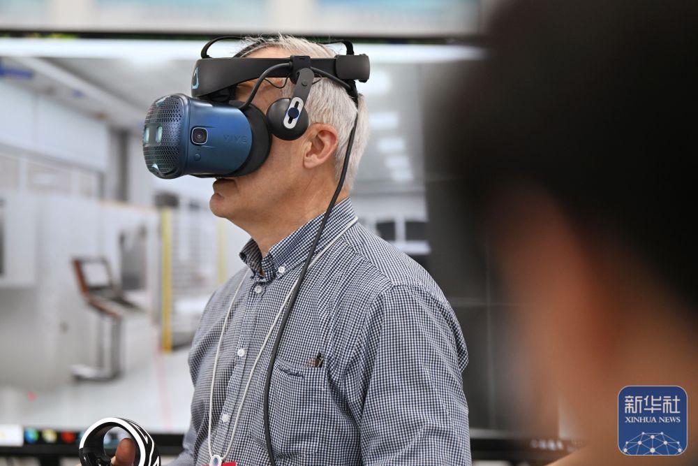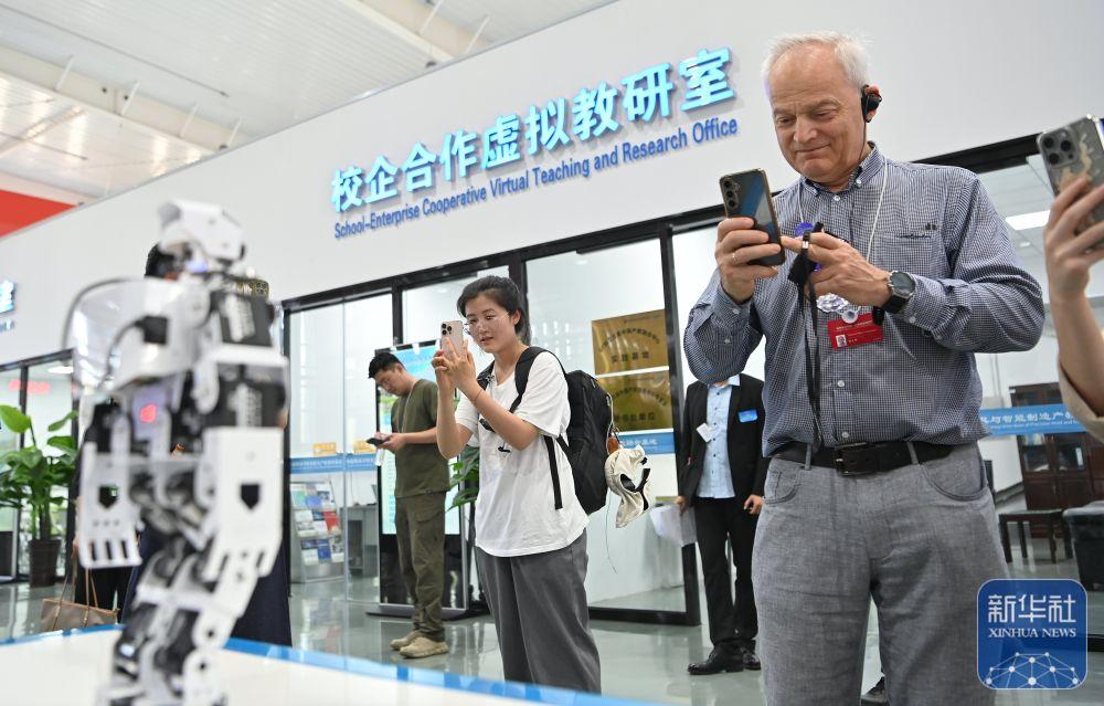 ↑ 7月7日,嘉宾在天津轻工职业技术学院参观体验。新华社记者 李然 摄影报道
