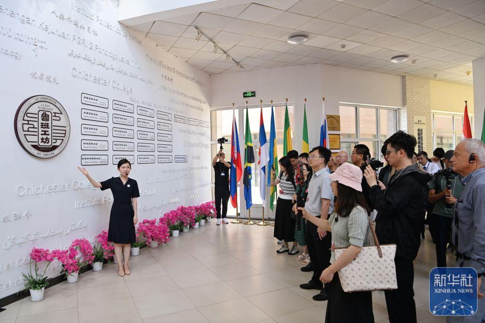 ↑ 7月7日,嘉宾在天津轻工职业技术学院参观交流。新华社记者 李然 摄影报道