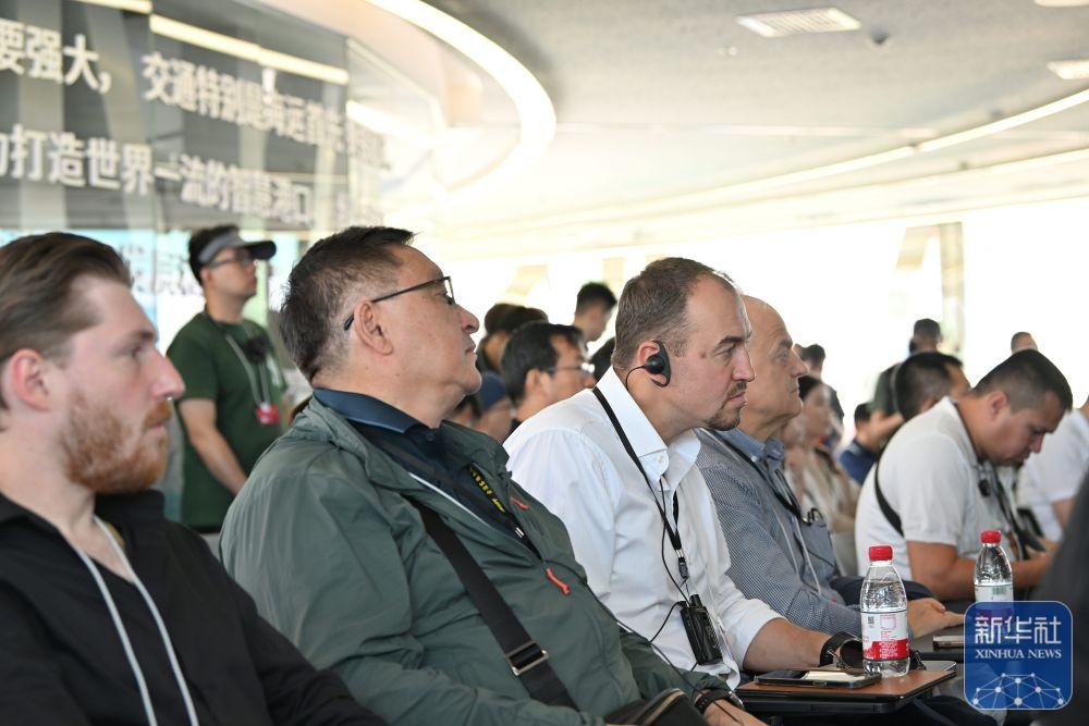 ↑ 7月7日,中外嘉宾在天津港“智慧零碳”码头听取介绍。新华社记者 李然 摄影报道