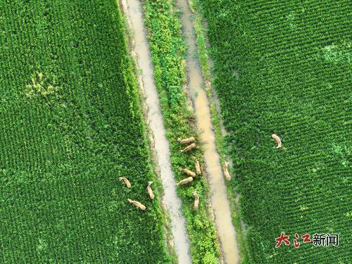 回想起一个多月前的那场奇妙邂逅,省林科院的王华仍难掩兴奋。 5月上旬,作为2025年鄱阳湖区域麋鹿监测项目的负责团队之一,王华和同伴一行三人深入南矶湿地国家级自然保护区寻鹿,经历两个昼夜的寻觅,终于在5月13日于保护区的神宕湖区域发现麋鹿的踪迹。神宕湖位于南矶湿地核心区,这里水面宽阔,人迹稀少,水生植物丰富,形成了多样化的湿地生境。航拍镜头下,日光如碎金般铺满湖面,波光粼粼间夹杂着星星点点的褐色剪影。镜头拉近,可看到12头麋鹿在湖中小憩,享受着怡然闲趣。这12头麋鹿为两雄八雌,还有一头小鹿和一头亚成体。其中,小鹿正和母鹿玩闹,所过之处水花四溅。另一侧,一头雄鹿则不断把水草挑到鹿角上,硕大的鹿角缠着飘扬的水草,看上去十分威风。 “这是在向母鹿示好呢!”王华告诉记者。作为一种“亲水”动物,麋鹿极善游泳,一天有大部分时间泡在水中,采食水草、树叶等。而每年5月到8月是麋鹿的发情交配期,也是其最为活跃的时段,其间,成年雄鹿常以双角挑举青草藤蔓等植物以示炫耀,并跟随和追逐母鹿。此时,雄鹿之间还会开启一场争夺配偶权的决斗,互相对峙或双角顶撞,即所谓的鹿王之争。半个月后,王华等人又一次在红星湖区域观测到11头麋鹿,种群结构为1雄10雌。据初步观察,麋鹿们体态丰腴、皮毛光滑,状态较好,公鹿身高在1.1米至1.2米之间,体长在1.7米左右,体重约150公斤,属于成年麋鹿的正常体征。