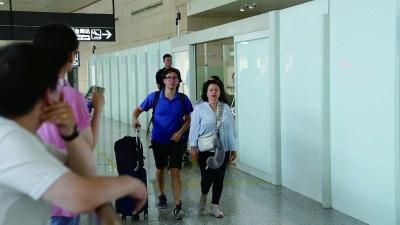乘坐巴黎—南京直飞航班抵宁的首批法国游客走出机场通道。 南京日报/紫金山新闻记者 克良辰 摄