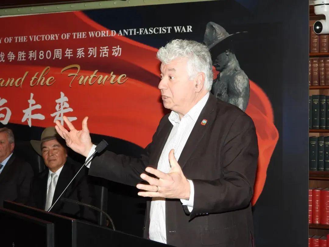 澳大利亚海事工会老干部协会新州分会主席Garry Keane在致辞中说:“和平事业始终是工会事业的重要组成部分,我们为捍卫和平而自豪。我们自豪能成为《和平与未来》纪念反法西斯胜利活动的一份子。当今世界紧张局势加剧,此刻正是警醒世人反对战争暴行、捍卫和平事业的关键时刻。我们更自豪能与世界各国人民并肩而立,共同呼唤和平,推动人类团结。”