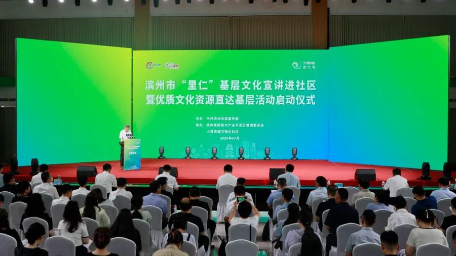 7月9日,滨州市“里仁”基层文化宣讲进社区暨优质文化资源直达基层活动启动仪式在高新区黄河谣艺术中心举行。市委常委、宣传部部长冷兴邦,区党工委副书记、管委会主任孟霄出席活动。