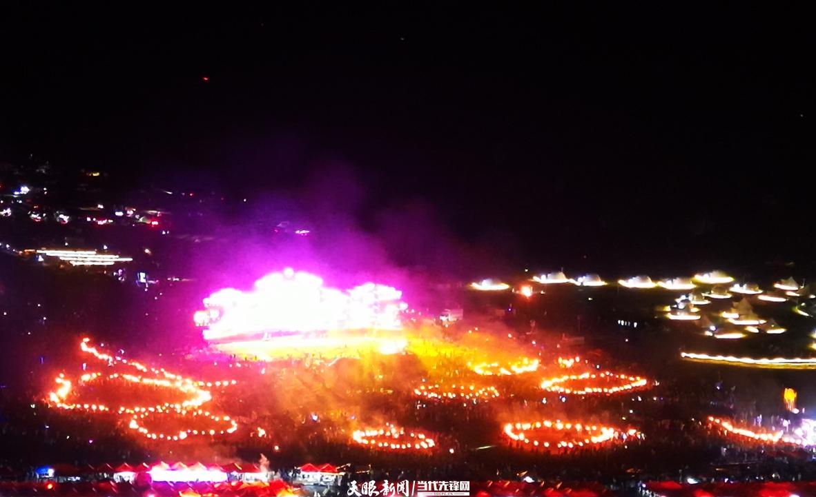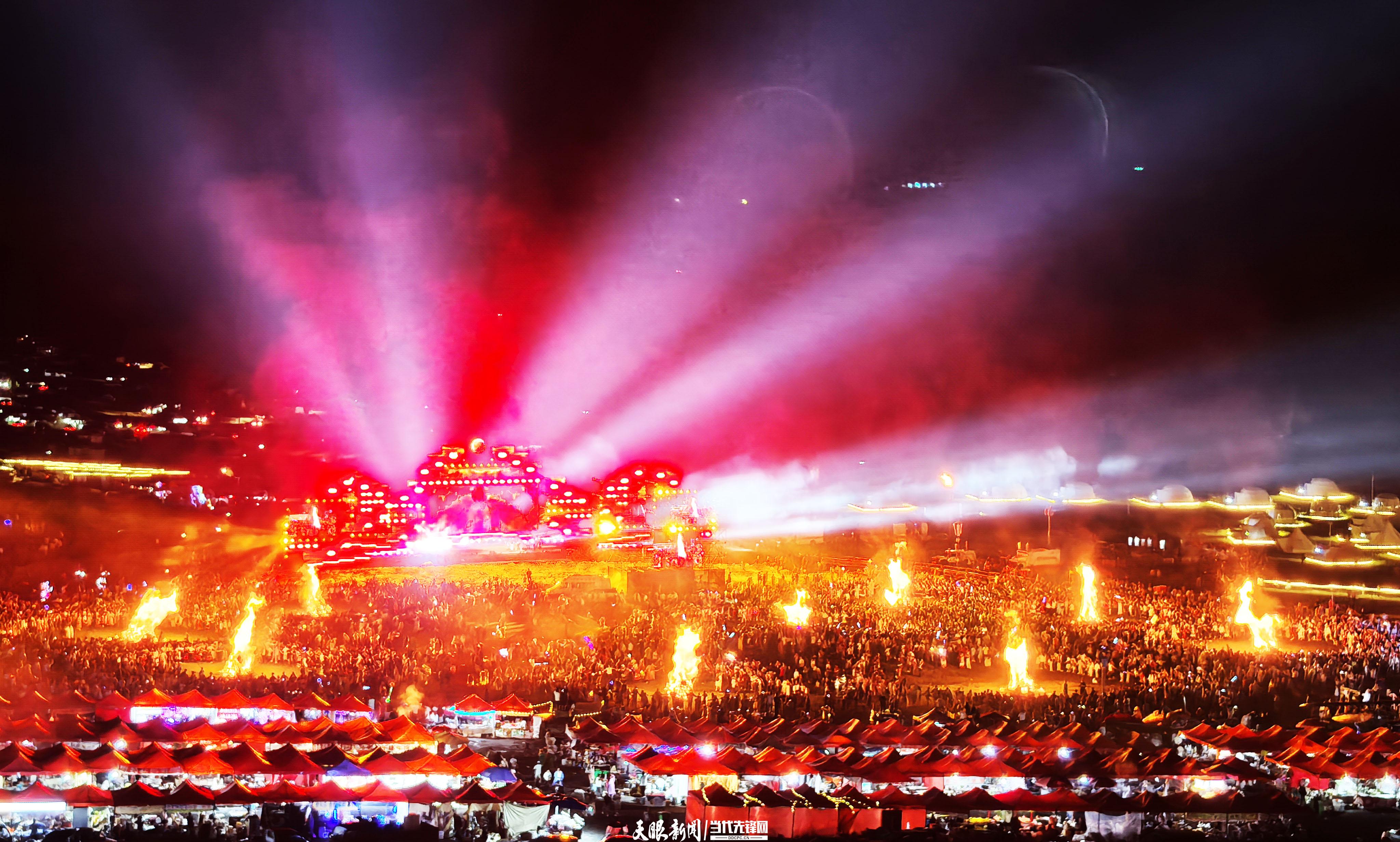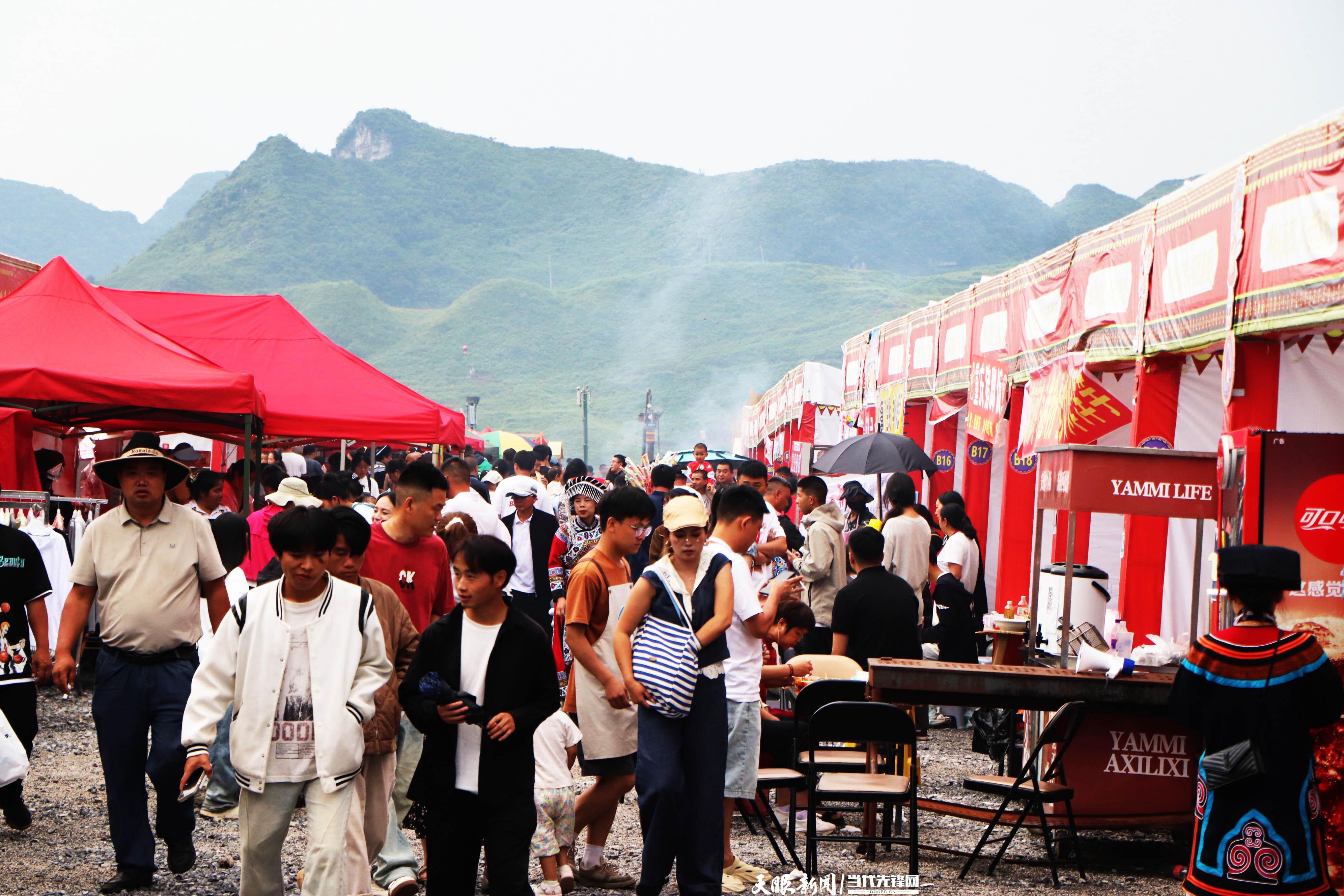 活动现场,取火队伍高举从小韭菜坪取得的火种进入主会场点燃主火炬拉开序幕,震撼的灯光秀与璀璨的低空烟花秀瞬间点亮夜空,引发观众阵阵欢呼。开幕式文艺演出以大型实景剧形式呈现,分为《黔山之巅》《神秘夜郎》《阿西里西》三大篇章,巧妙地将国家级非物质文化遗产《彝族铃铛舞》、原生态彝族情歌对唱等传统民族歌舞元素,与现代声光电技术和时尚服饰秀相融合,层层递进,生动演绎了乌蒙大地的深厚文化底蕴和蓬勃活力,引发观众强烈共鸣。