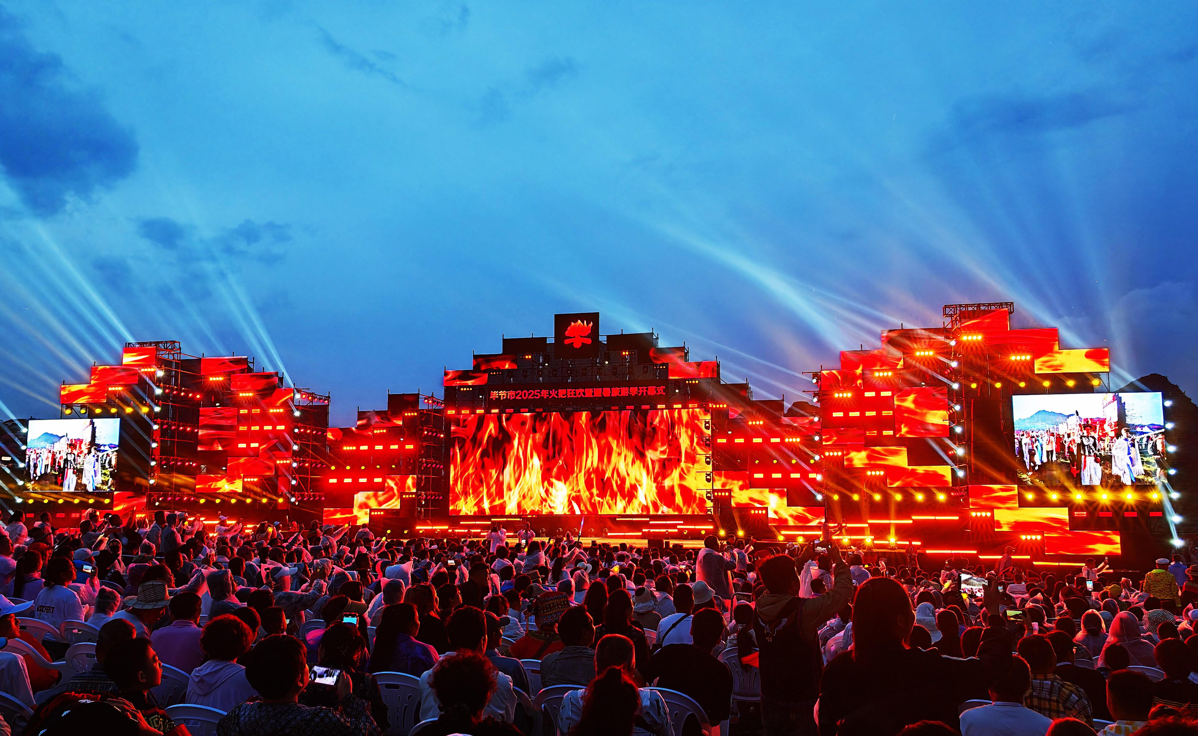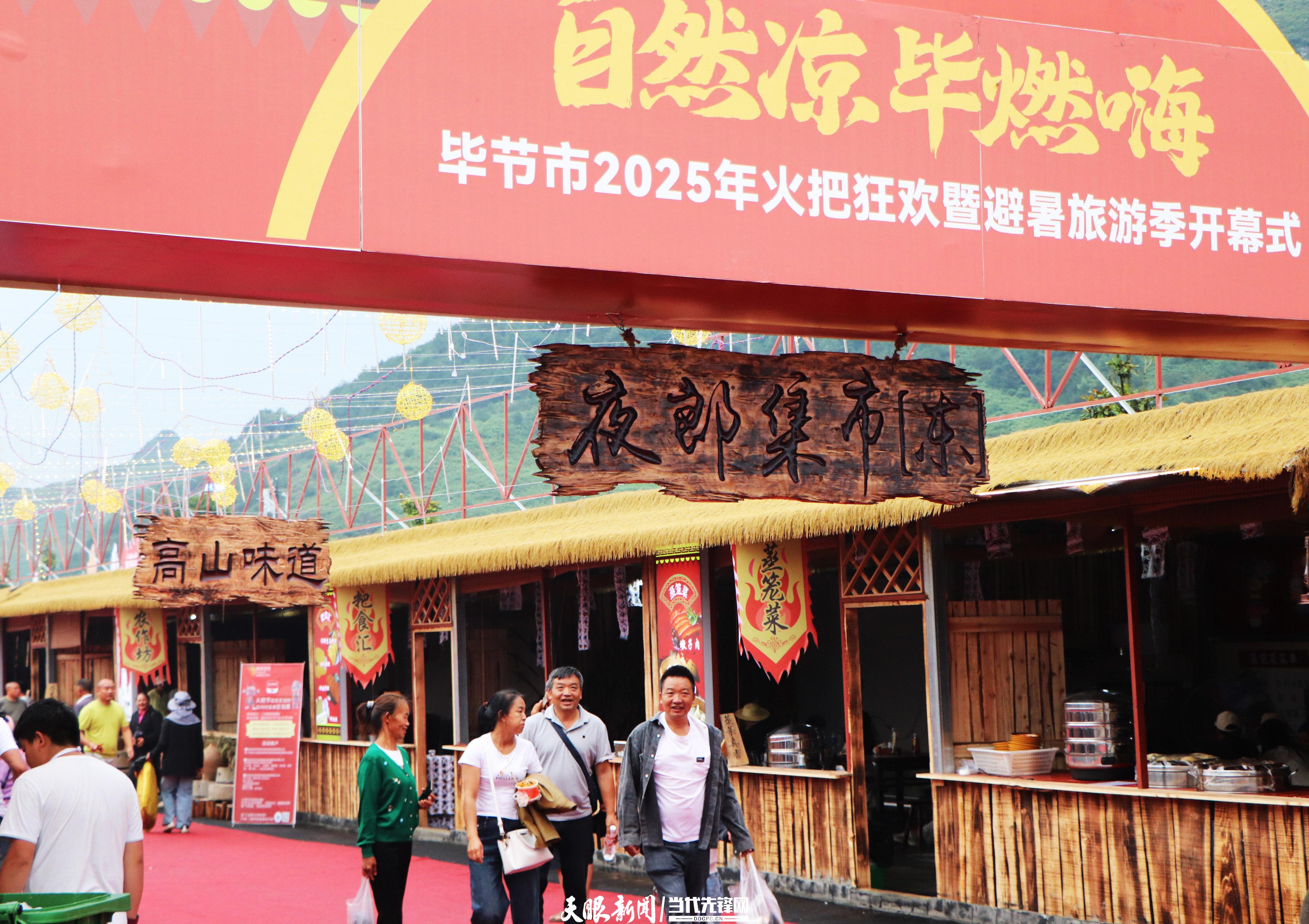 乌蒙大地燃激情,阿西里西聚宾朋。7月18日晚,以“自然凉·毕燃嗨”为主题的毕节市2025年火把狂欢暨避暑旅游季开幕式在赫章县阿西里西·二台坡景区隆重举行,由此拉开了毕节市为期19天(7月8日至26日)系列文旅活动的序幕。来自全国各地的6万余名游客与当地各族群众身着节日盛装,共同汇聚在“夜郎故里·黔山之巅”,沉浸式体验了一场融合民族文化与现代激情的夏日盛宴。