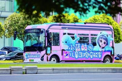 南京市儿童医院河西院区“公交就医专线”B61路采用“宝宝巴士”车型,造型醒目、充满童趣。