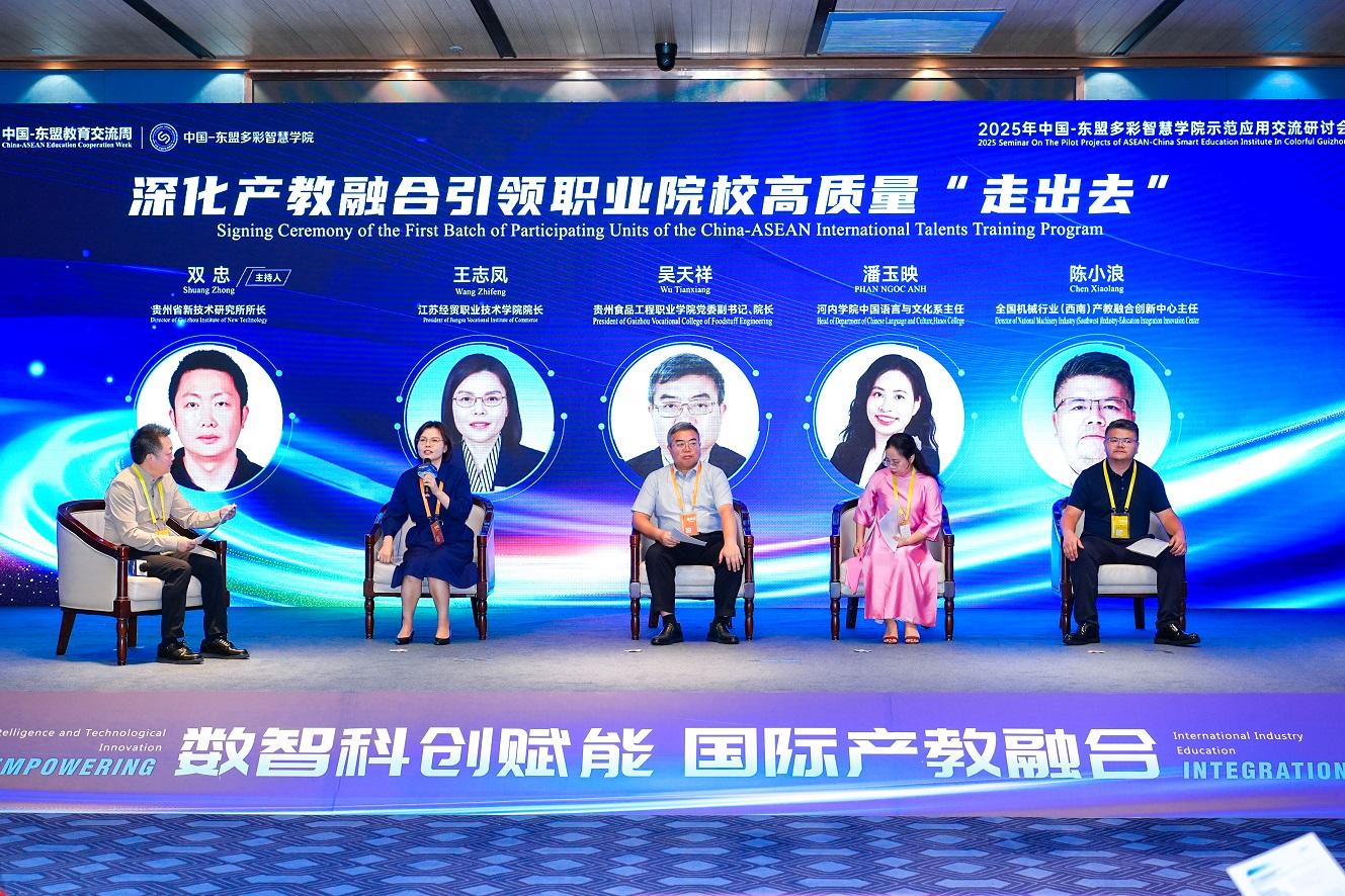 7月26日,由中国—东盟教育交流周组委会秘书处主办,中国移动通信集团贵州有限公司、国家开放大学数字化学习资源中心、贵州电子科技职业学院承办的数智科创赋能·国际产教融合——2025年中国—东盟多彩智慧学院示范应用交流研讨会在中国—东盟教育交流周永久会址举行。