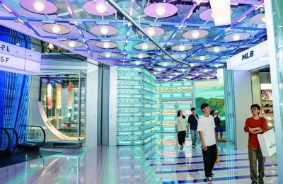 市民在德基广场二期新开放的艺术商业市集逛街购物。该场景融合霓虹灯影与钢铁元素,带给消费者别具一格的视觉体验,多家潮品商店持续“上新”中,为新街口商圈增添酷炫新奇的消费新场景。南京日报/紫金山新闻记者 戚珂嘉 摄